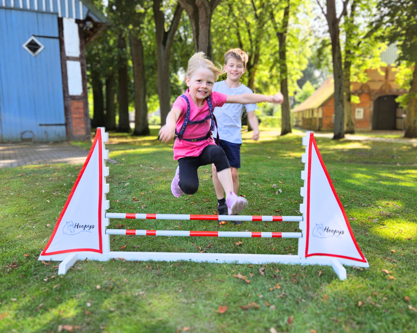 Unsere Mission bei Hoopys ist, stabile und sichere Hobby Horse Hindernisse und Sprungstangen herzustellen, die sicher und leicht zu handhaben und originalgetreu in ihrer Erscheinung sind. Wir legen großen Wert darauf, durchdachte und langlebige Produkte anzubieten, die Kindern Freude bereiten und die eigene Kreativität anregen. Unsere Sprunghindernisse fördern die Fantasie und stärken ganz nebenbei das Selbstbewusstsein der Kinder. Denn, jedes erfolgreiche Überwinden eines kleinen Hindernisses im Garten ermutigt, auch die großen Hürden des Lebens selbstbewusst und mit Zuversicht anzugehen.